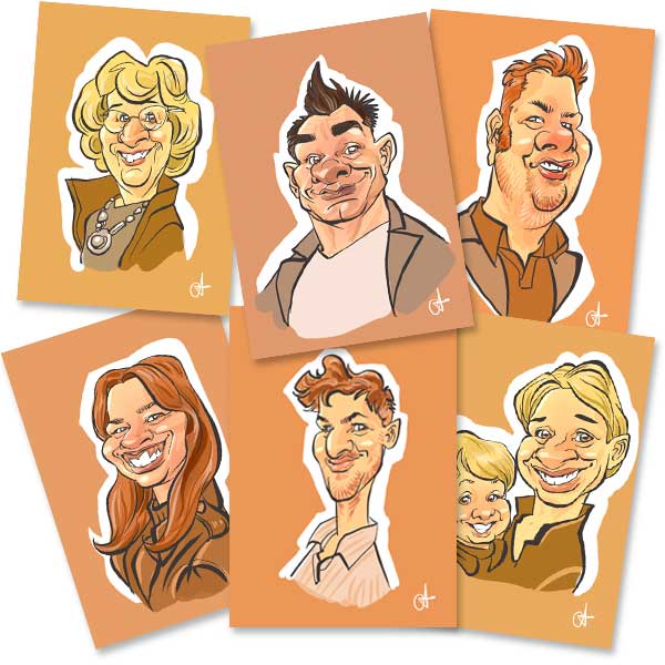 Im Übrigen reicht die Bandbreite des Karikaturstils von heiteren Portraits bis hin zu satirischen Verzerrungen - ganz so wie Sie oder Ihre Gäste es wünschen!!