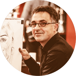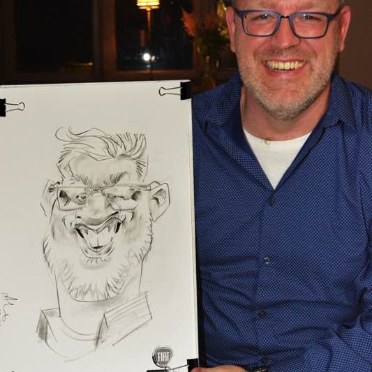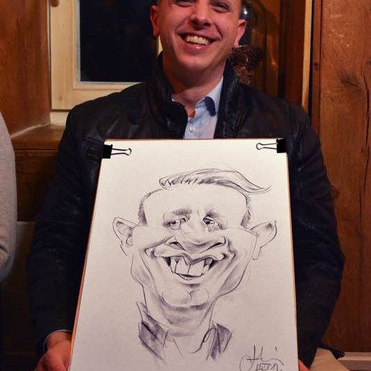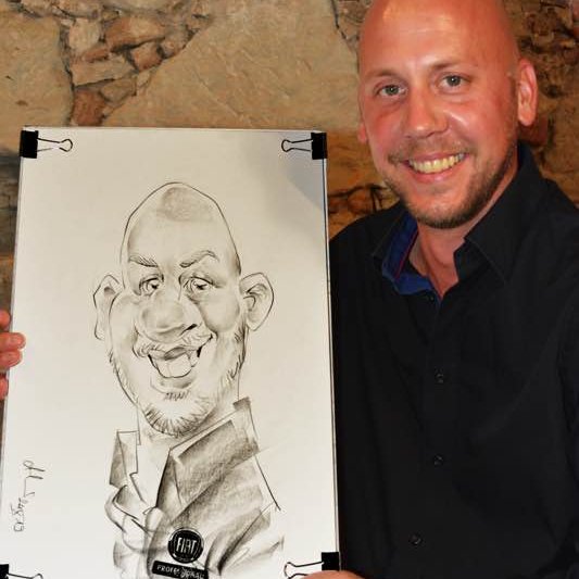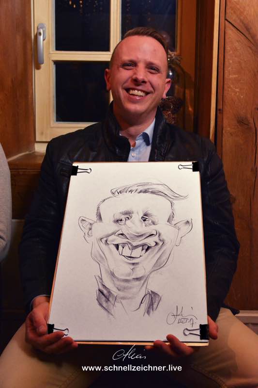 Alexis kann genau die Eigenarten und Besonderheiten der Menschen in seinen Karikaturen herausheben! Wir waren sehr begeistert! Sein Auftreten ist sehr professionell. Wir haben ihn gebucht für eine Firmenfeier und haben damit einen bleibenden Eindruck bei unseren Kunden und Partnern hinterlassen.