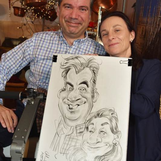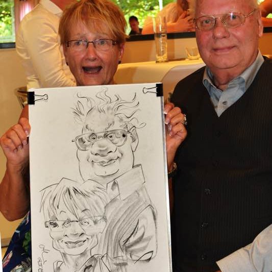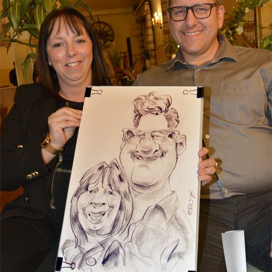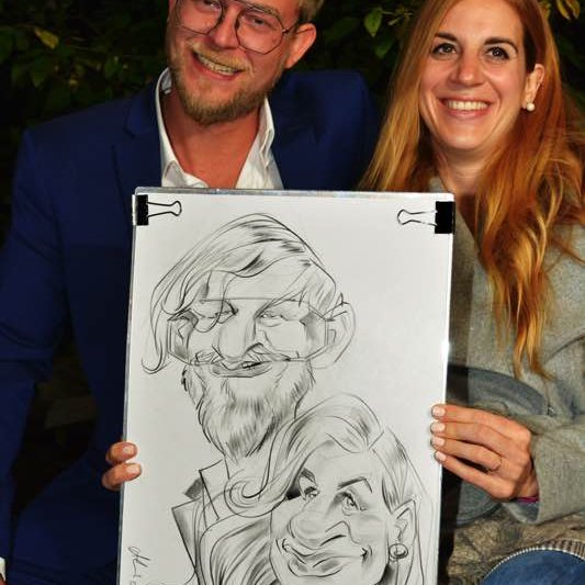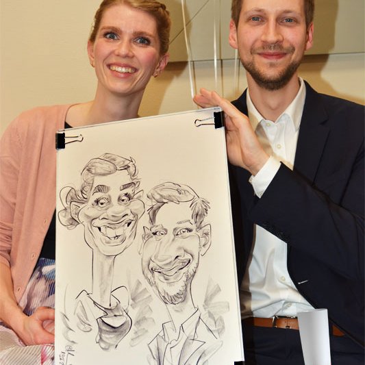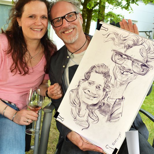 noch mal vielen Dank für den tollen Einsatz und die super schönen Karikaturen unserer Gäste. Auf unsere Silberhochzeit waren die gezeichneten Karikaturen für alle ein Riesenspass und eine große Bereicherung. Sie waren dabei immer sehr nett und unkompliziert. Es bleibt für uns und alle Gäste eine schöne Erinnerung und würde Sie immer wieder weiterempfehlen