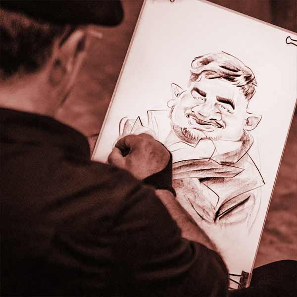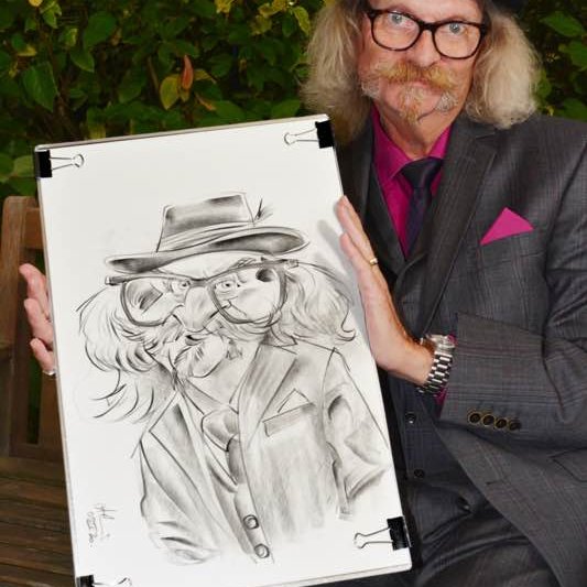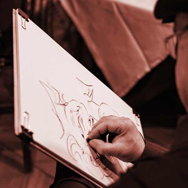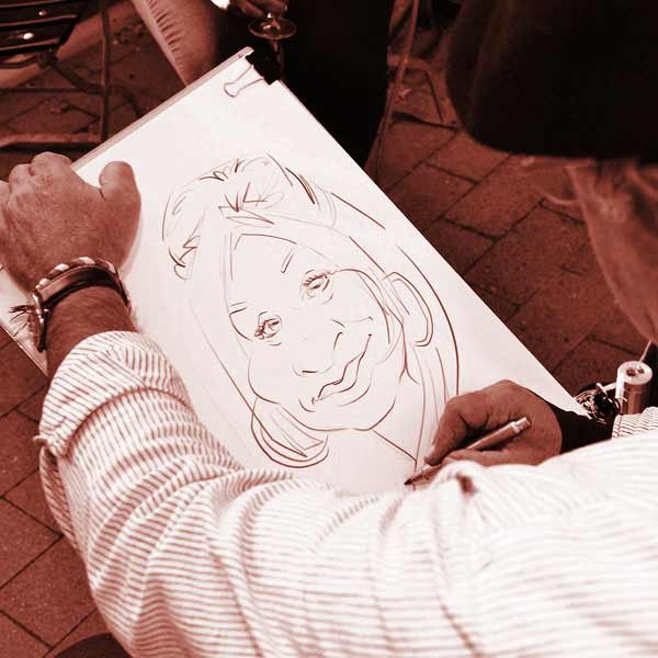 Durch meine exklusive Schattierungstechnik auf drehendem Zeichenbrett ist jede Karikatur ein kleines happening mit Stil.