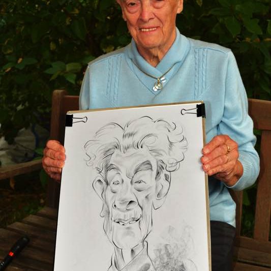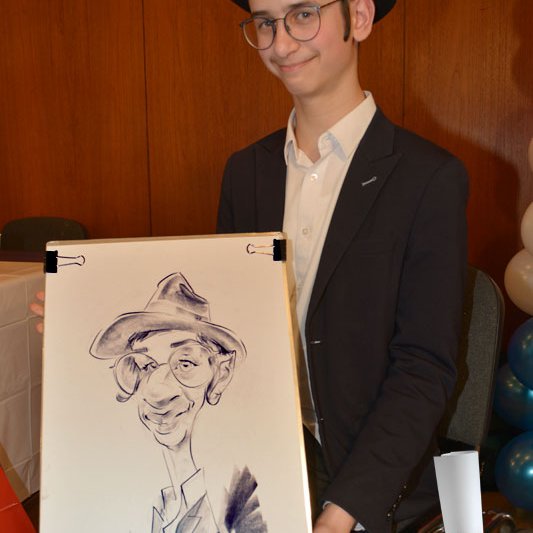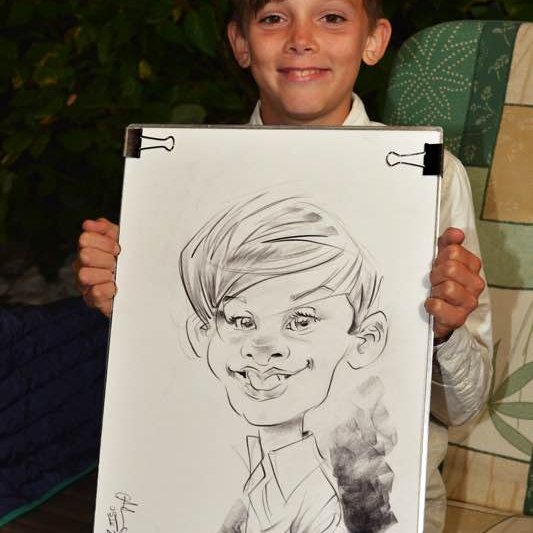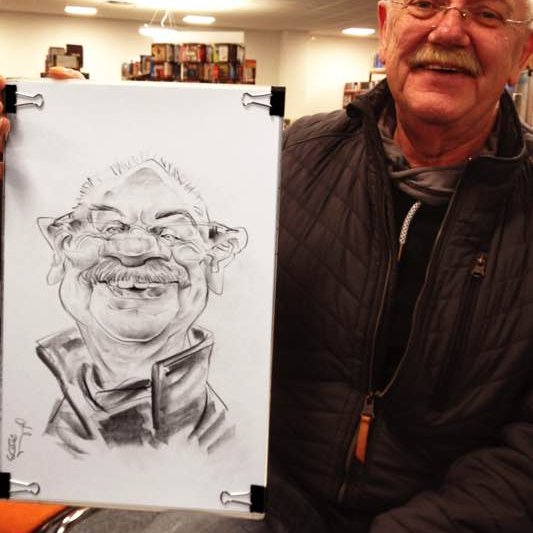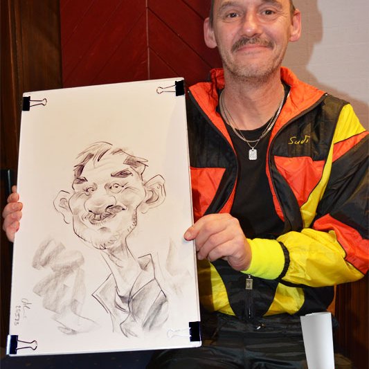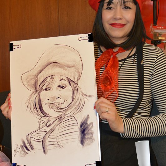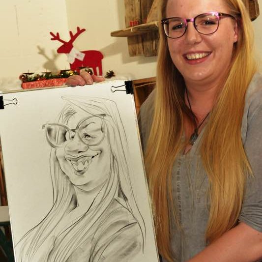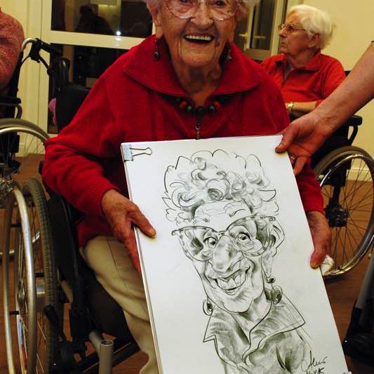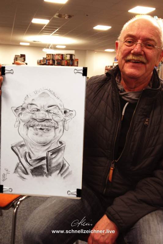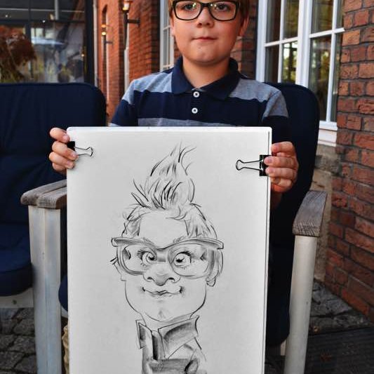 Hallo Alexis. Während unserer Jubiläumsfeier hast du viele Menschen mit deinen tollen Zeichnungen zum lachen gebracht und das Feedback war super!