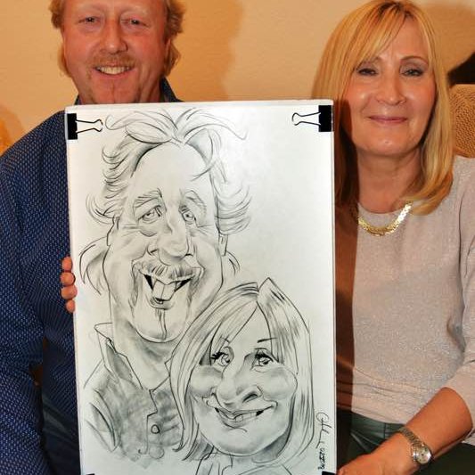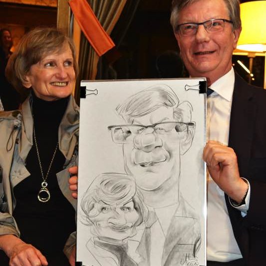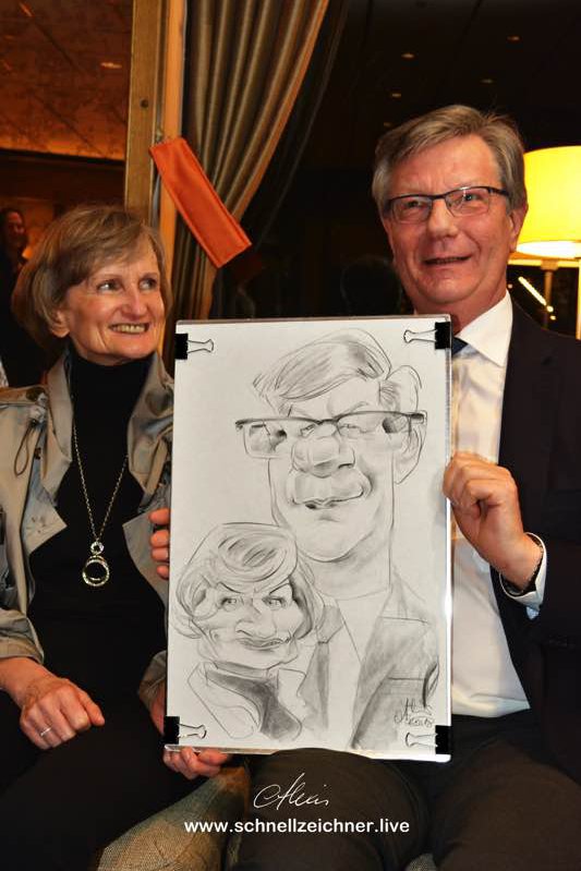 Gute Karrikaturen und gute Unterhaltung der Gäste. Eine bleibende Erinnerung an einen schönen Abend.