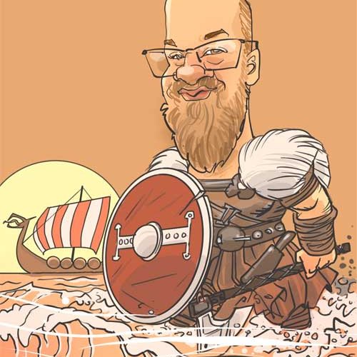 Ich würde mich als kritischen (skeptischen?) Auftraggeber bezeichnen, aber mit Alexis hat das gut funktioniert. Der hat’s drauf. Einige schnelle Vorskizzen per E-Mail haben zu einem tollen Portrait geführt. Fazit: volle Punktzahl*****