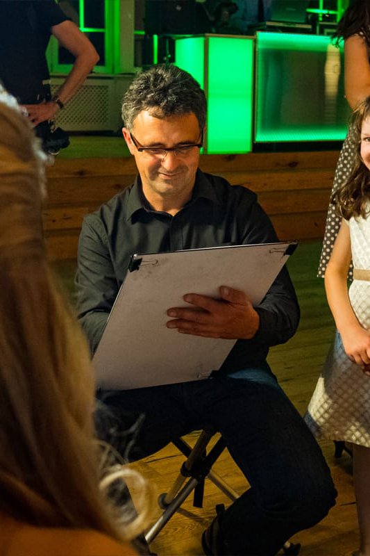 Wir haben diesen wundervollen Schnellzeichner als Überraschung auf der Hochzeit meines Bruders gebucht. Er kam super bei dem Brautpaar und bei den Gästen an. Sehr sympathisch und seine Werke sind fantastisch.