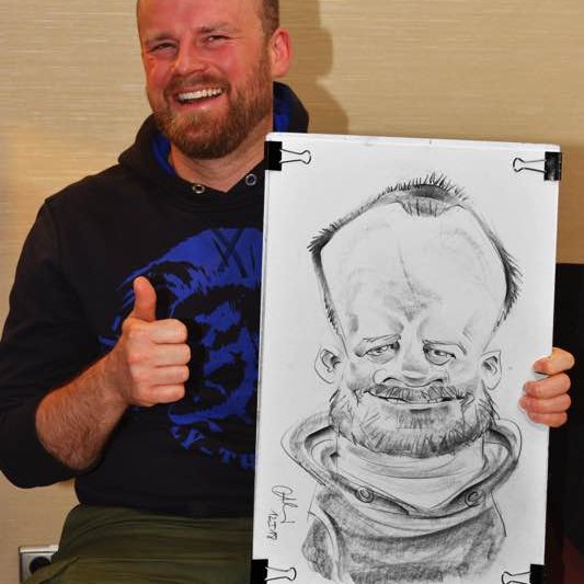 Seit 2007 gab es zahlreiche Karikaturanlässe, darunter mehrere Hundert auf Messen, Firmenfeiern, Hochzeiten, Geburtstagen und Events im gesamten Bundesgebiet, bis hin zum Bundestagsgarten. Im Laufe der Reisen hat sich eine Zeichenroutine eingestellt, die es mir ermöglicht, mich besser auf die Modelle zu konzentrieren.